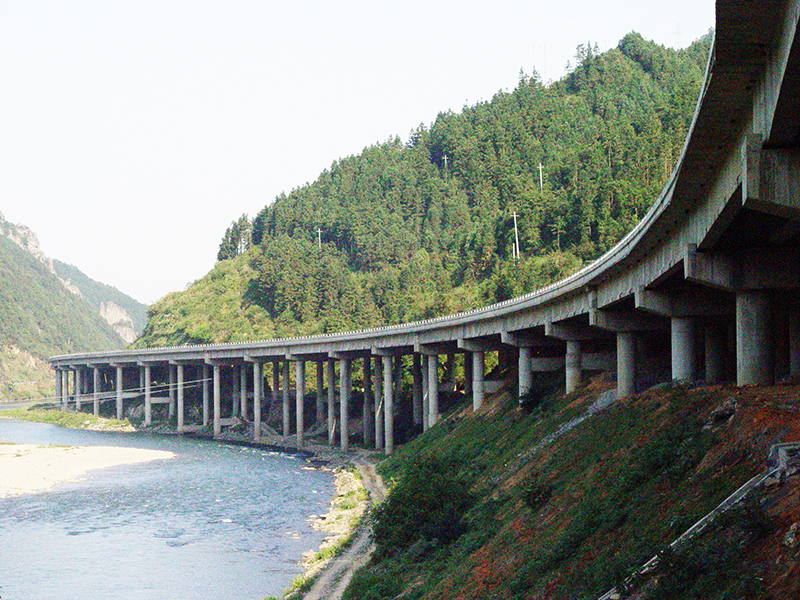 湖南省邵阳-怀化高速公路,公司承建土建工程6.32km,含洞口塘大桥(25*30 36 26 30 3*40 6*30简支连续T梁)和洞口塘隧道一座。2005年建成。